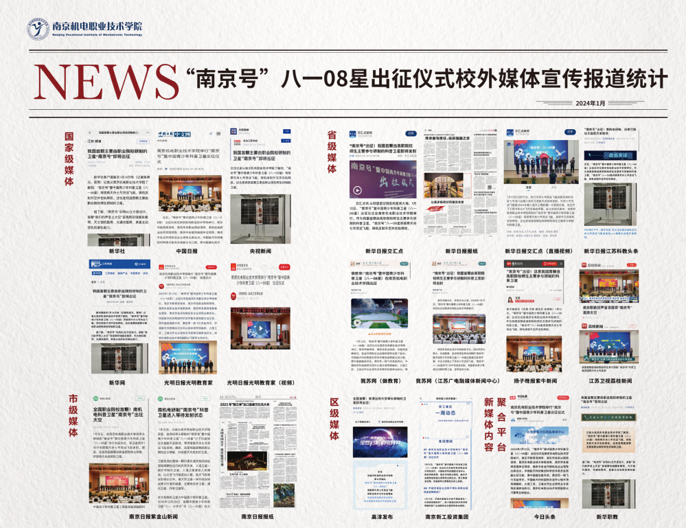 “南京号”暨中国青少年科普卫星八一08的成功发射,校推动高质量发展的一重要里程碑,高水平展示了我校在人才培养和青少年科普教育方面的最新成果这颗星不仅是我们习近平总书记八一01星回信精神的一个承续,鼓励更多的青少年讲科学、爱科学、学科学、用科学,发挥出启明星的作用是我们全体机电师生播种航天梦、强国梦的重要时刻,是深入推进产教融合、科教融汇的一个生动实践,航天强国建设在学校得到了师生的广泛响应南京市委市政府度重视科普卫星工程,专题研究将“八一08星”正式定名为“南京号”。2024年1月17日22点27分,这颗星搭载天舟七号飞船成功升空后,迅速成为国内主流媒体关注的焦点。全方位、多角度的持续报道,再次激发起人们尤其是青少年对航天科技和浩瀚宇宙的兴趣和好奇心。