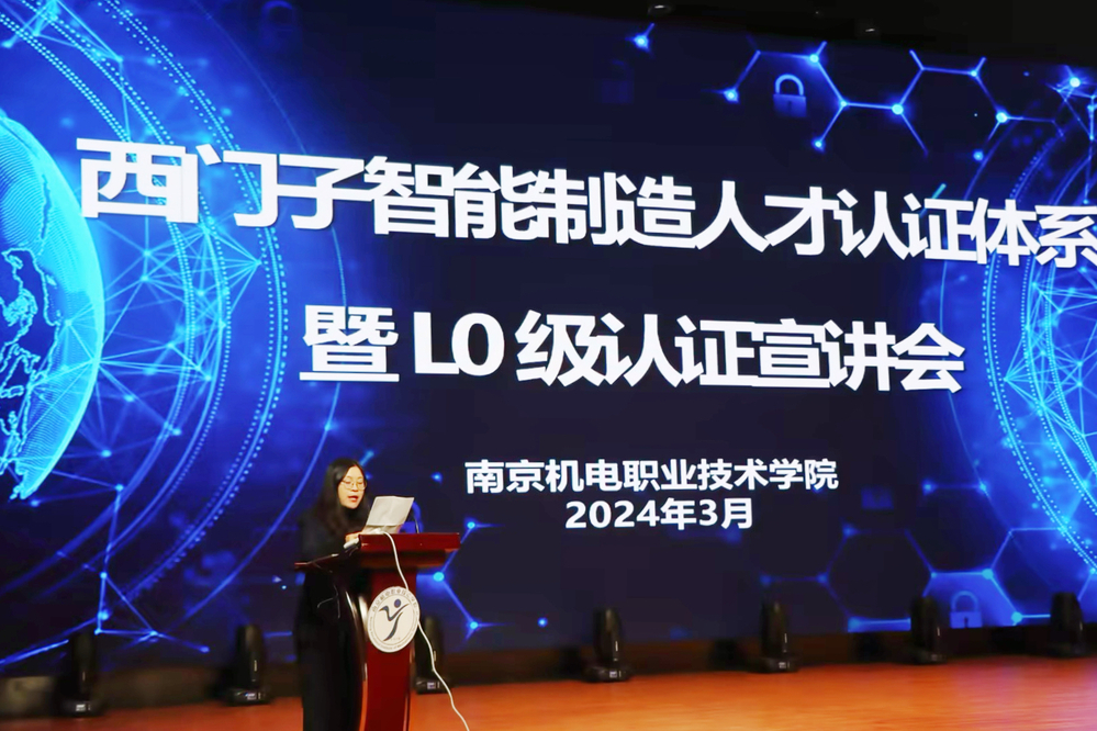为大力推动产教融合、校企合作,创新应用型人才培养模式,更好提升学生技能水平,促进高端对口就业。3月19日,我校自动化工程系(智能制造学院)在青春剧场举办米兰官方网页版“西门子智能制造人才认证体系暨L0级认证”宣讲会。我校自动化工程系主任张海红、副主任顾晟吉及西门子(中国)有限公司创新与人才发展部市场拓展经理孙宏涛、技术研发专家李瑊、业务发展经理刘吟、市场推广经理王亚楠4名企业专家出席,自动化工程系全体师生参加活动。活动由电气自动化技术专业负责人李银露主持。