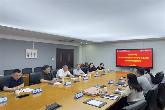为促进高职院校之间资源共享、优势互补,推动电子信息工程技术专业高质量发展,2024年6月21日我校电子工程系赴南京信息职业技术学院电子信息学院,共同探讨专业建设的新道路,携手开创教育合作与发展的新篇章。南信息电子信息学院党总支书记陈永权,南信息电子信息学院院长马永兵,南信息电子信息学院副院长魏欣,南信息电子信息学院党总支副书记陈尔波,电子工程系主任姚小冬,党支部副书记陈雪,副主任丁向琴等出席会议。