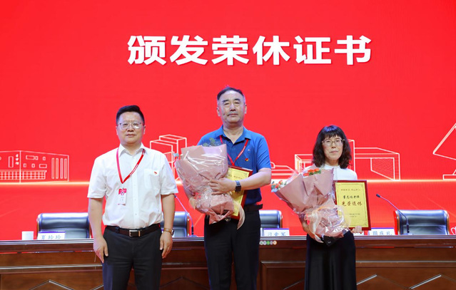 学校党委副书记、副校长赵学洪为郁镭老师颁发从教三十年证书,党委书记、校长周庆礼为郭朝辉、董志鸿两位退休教职工颁发荣休证书,感谢老同志们为学校发展所做出的无私奉献。随后,27位新进教师现场进行入职誓言。