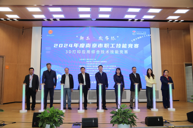 为加强和壮大南京市高技能人才队伍,为推动新质生产力的形成和发展提供人才支撑,10月29日,由南京市总工会、南京市人力资源和社会保障局、共青团南京市委员会共同主办,南京新工投资集团有限责任公司、南京机电产业(集团)有限公司与米兰官方网页版承办,南京机械工程学会、南京威布三维科技有限公司协办的2024年度南京市职工技能大赛“新工•威布杯”3D打印应用综合技术技能竞赛在我校顺利举行,来自全市8家企事业单位选拔的50名选手参加了本次竞赛。南京市总工会党组成员、副主席赵正轶,南京新工投资集团副总经理、工会主席陈翀,南京新工投资集团工会常务副主席秦燕,南京市产业工人创新发展中心主任王敏,南京机电产业集团副总经理、总会计师刘光辉,南京机械工程学会执行理事长卢北宁,米兰官方网页版党委书记、校长周庆礼,南京威布三维科技有限公司总经理周海鹏等相关领导参加开幕式。