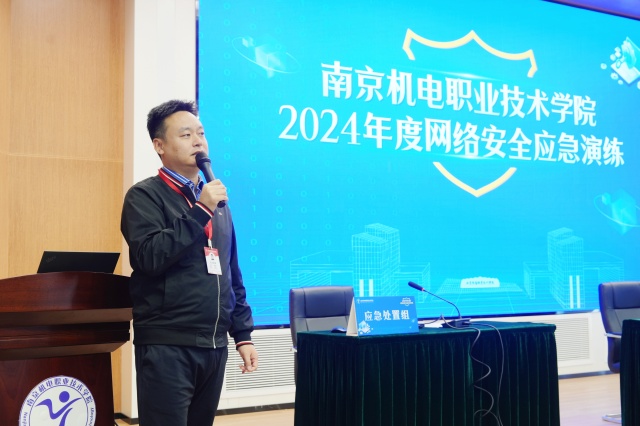 在点评环节,孔德丽首先祝贺本年度网络安全应急演练成功开展,感谢各单位、各部门的积极配合。他指出,要进一步提高师生网络安全意识,加强防范个人信息泄露。各部门要及时关注业务系统运行情况,加强与维保单位的联系和沟通,确保网络安全事件应急保障能力。未来,学校要通过建制度、建设施、建队伍,完善工作机制,提高专业水平;通过勤巡检、勤沟通、勤整改,提升日常运维能力;通过多培训、多演练、多总结,进一步提升师生网络安全意识,共同筑牢校园网络安全屏障。