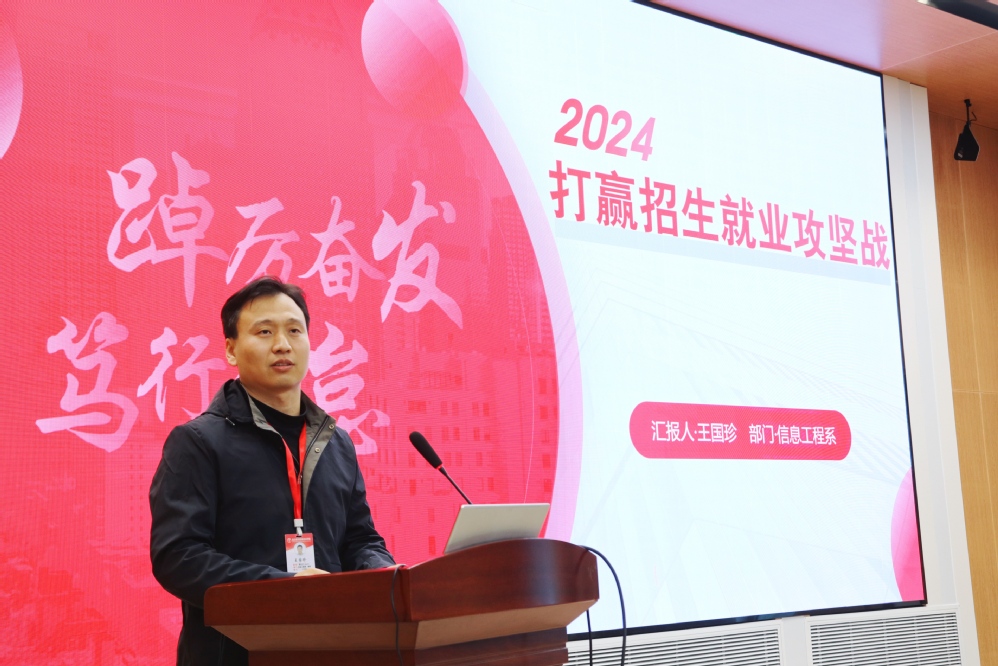2024年11月29日,我校在乐学楼102召开2024年招生就业工作总结会。党委委员、全体中层干部、片区招生组长、专业负责人、就业干事、辅导员等100多人参会,会议由学生工作处处长张宝中主持。
