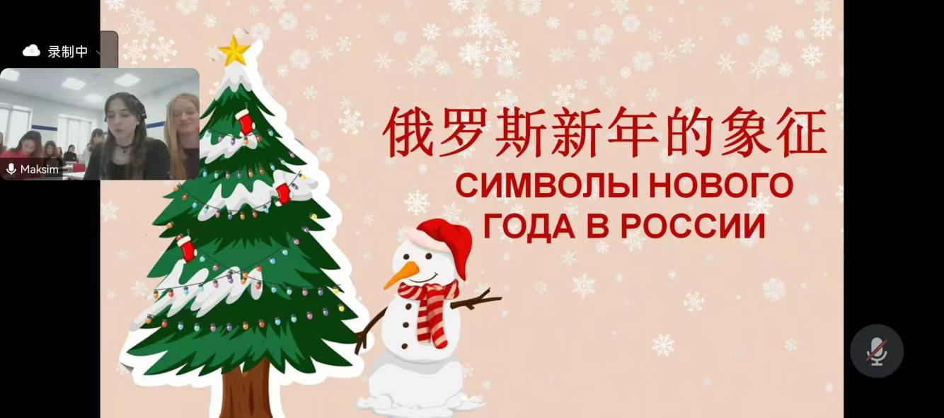 据了解,整节课以中文+俄语形式开展。在这次线上交流课堂中,两校学生围绕主题《我们的新年》进行了探讨和交流。国立社会人文大学主管国际校长助理马克西姆 埃尔绍夫、中国教育国际交流研修学院中俄教育合作办公室副主任张践、米兰官方网页版继续教育学院副院长周云龙、米兰官方网页版继续教育学院国际交流合作中心主任石琳婕和米兰官方网页版俄语老师李征,参加了此次线上交流课堂。