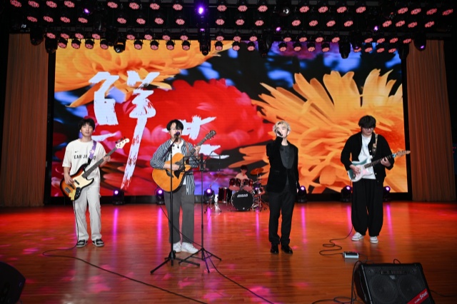 开场的吉他社乐队以一首《鲜花》点燃全场激情,如春日暖阳般温暖的旋律瞬间点燃青春剧场的炽热氛围。舞台上,灯光璀璨如梦,选手们用细腻的嗓音和灵动的表演,将《连名带姓》中的深情、《如愿》里的憧憬、《于是》所蕴含的执着,以及《我醒着做梦》中的迷惘,一一精彩呈现。