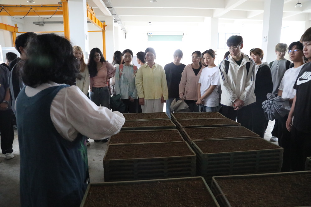 微雨清晨,参与活动的师生怀揣着期待与好奇,踏上前往陈福明谷物种植家庭农场的旅程。抵达农场后,农场负责人陈蓉热情相迎,期待师生们能够将农场生态的美,技艺的美得以传递。本次实践主要围绕农场机械设备的参观与农事知识讲解、农事活动体验设置不同环节。漫步在阡陌纵横的农田间,陈蓉生动地讲述着农场从传统耕作到现代化运营的发展历程,详细介绍着水稻、蔬菜等丰富多样的种植品种和庞大的生产规模。