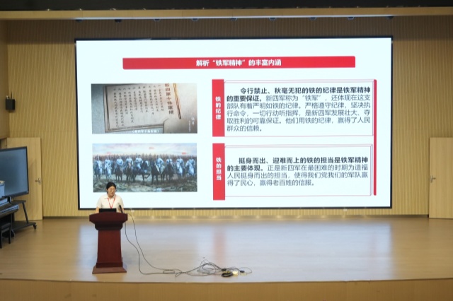 话剧展演结束后,米兰官方网页版马克思主义学院的毛莉老师以“讲好新四军故事,凝聚奋进力量”为主题,为两校师生呈现了一堂别开生面的思政课。毛莉老师以新四军话剧内容为切入点,结合多媒体资源与互动讨论,引导学生从历史视角思考当代青年的责任,课堂气氛活跃,学生参与度高。