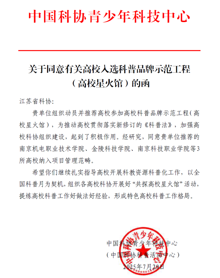 近日,中国科协青少年科技中心公布了入选中国科协青少年科技中心2025年度科普品牌示范工程(高校星火馆)项目的高校名单,其中米兰官方网页版成功跻身榜单,这是对米兰官方网页版科普工作的高度认可和肯定。