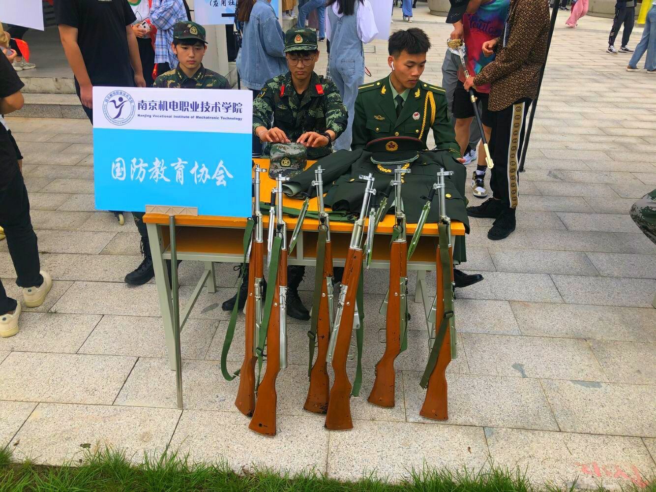 巡游活动的活动项目种类很多,既有展现个人魅力的音乐活动,也有体现合作精神商业思维的摆摊活动。不过最令人激动的还是国防教育协会主办的军人合影活动。国旗班的同学身穿帅气的军装,腰束武装带,手持冲锋枪,精神威武地站在活动现场,引来了大批崇拜者,他们借此机会,向前来参加活动的同学和老师们对征兵的相关政策做了宣讲,激发了许多学生想要当兵的热情。参加活动的同学,还可以通过各种游戏获得虚拟货币,以此换得和穿着军装的退役军人合影一次。