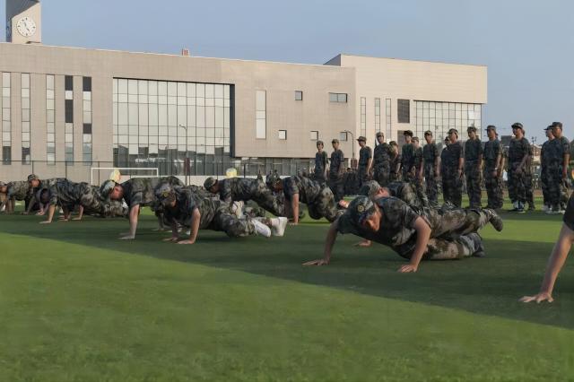 昂首挺胸、手贴裤缝,在炎炎烈日中磨炼意志,飒飒军姿彰显青春力量铁一般信仰、铁一般信念、铁一般纪律、铁一般担当。