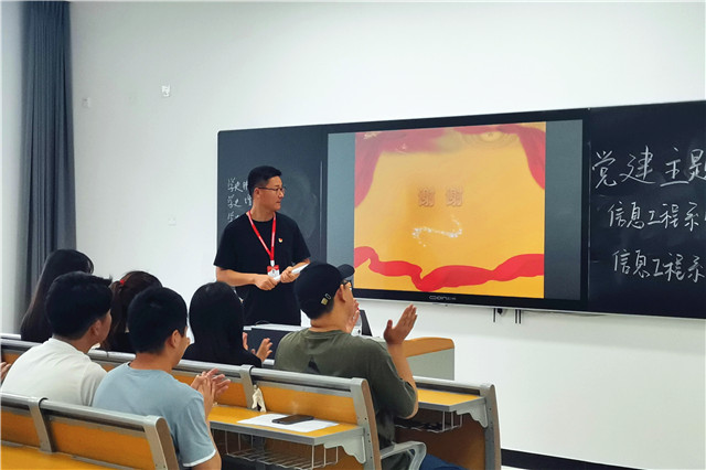 其次,信息工程系团总支书记于宇围绕《重温中国共产党党史》进行主题发言,从学习中共党史的重要意义、内容和方法,带领学生重温党的光辉历史,号召广大青年深入学习党史,并借助伟人邓小平通知的传奇经历,全面贯彻习近平总书记对青年学生的要求,重实践、勇担当、讲奉献,在日常生活中展现青年活力、青年担当,努力成长为能够担当民族复兴大任的时代新人。