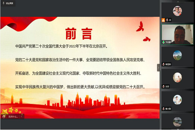 为喜迎党的二十大,引导全体教职工增强“四个意识”、坚定“四个自信”、做到“两个维护”,对“国之大者”领悟到位,信息工程系党支部依托腾讯会议平台于4月19日开展了线上政治理论学习,本次学习的主题是“喜迎党的二十大,永远跟党走”。支部书记吴伟萍主持会议,支部全体党员及普通教职工参加学习。