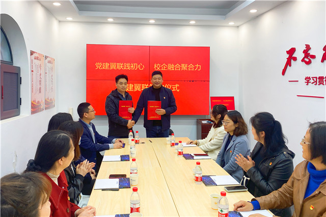 随后,双方党支部全体党员在“赓续传承”展厅,面向党旗重温入党誓词,双方党支部书记签署了《“党建翼联”活动合作书》。