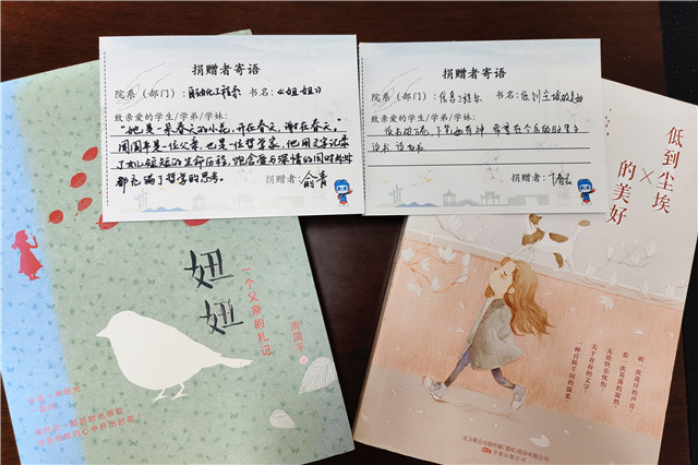 书之世界如此美好,世界之书何其精彩。此次捐书主题党日活动得到了全校师生的积极响应,大家主动参与将自己珍藏的书籍捐献出来,并在书中夹上对未来读者写下的暖心寄语。眼睛看不到的地方,文字可以带你到达;脚步抵达不了的地方,文字也可以将你送达。捐赠一本书,传递一份爱,书籍“流动”的过程,也将流传出新的故事。