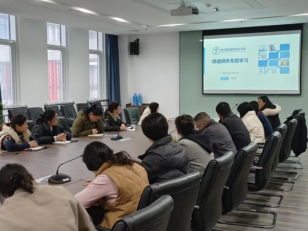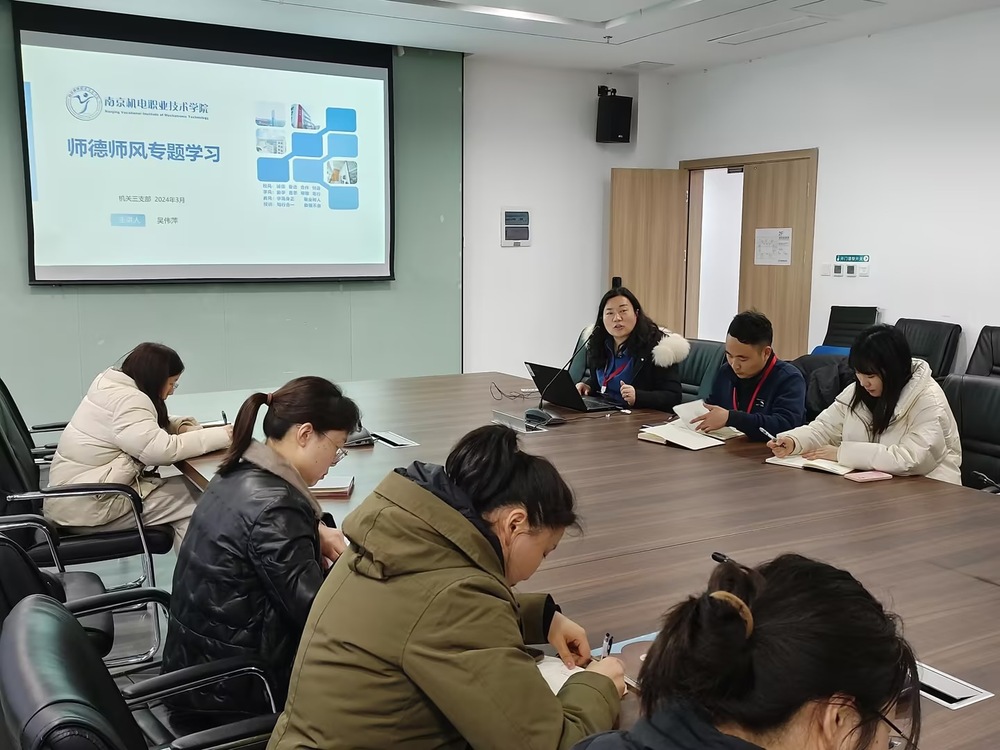 为加强师德师风建设,教育和引导教师不断加强自身行为修养,营造风清气正的教育环境,机关三支部于35日下午在育德楼210开展2024年春季学期师德师风专题学习,会议由机关三支部书记吴伟萍主持,支部全体教职工参会。