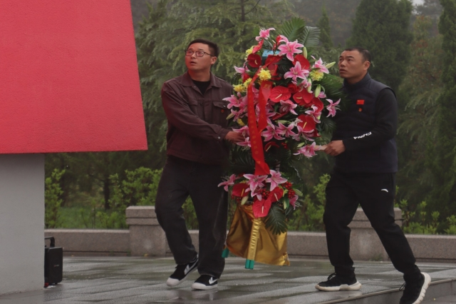 仪式伊始,两位党员代表缓缓走上前,将盛满鲜花的花篮敬献在烈士纪念碑前,学校党委委员、纪委书记姜振宇上前整理挽联。随后,在肃静的氛围中,全体人员向烈士默哀,表达对先烈的深切哀思和崇高敬意。默哀过后,重温入党和入团誓词,铿锵有力的誓言在陵园上空回荡。