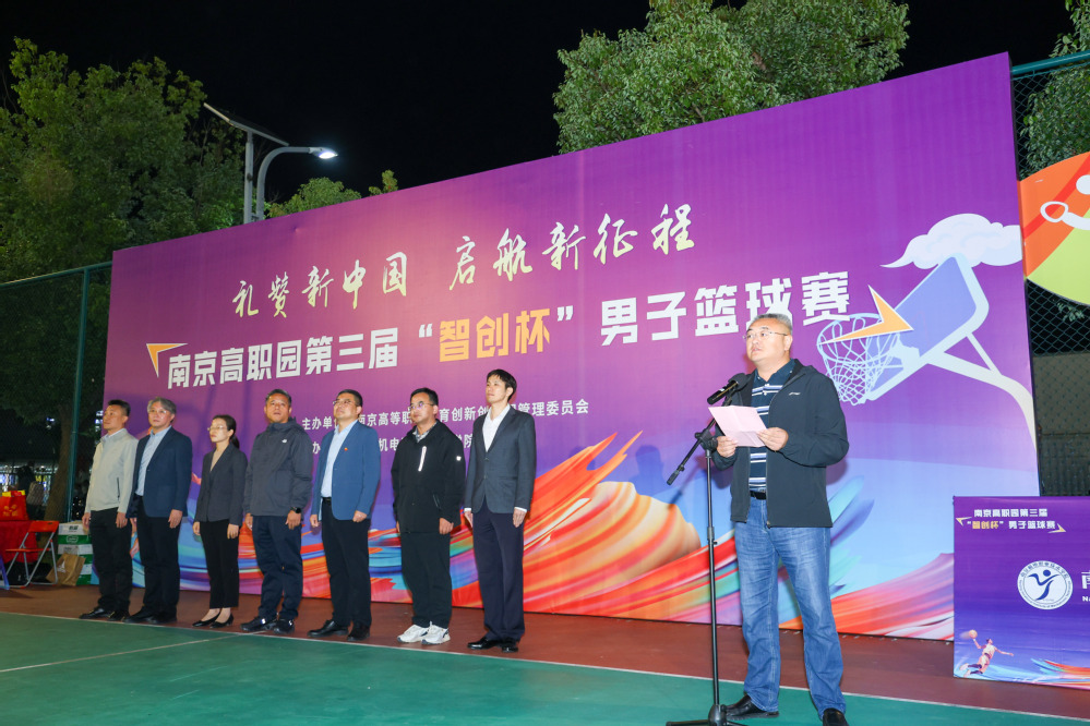为庆祝新中国成立75周年,深入学习贯彻党的二十届三中全会精神,推动文化事业发展,强化校企地融合,加强园区“智创”党建联盟成员单位交流。10月23日,由南京高等职业教育创新创业园管理委员会主办、米兰官方网页版承办的2024年南京高职园第三届“智创杯”男子篮球赛在我校顺利开幕。开幕式由党委委员、党委工作部副部长高水冕主持。