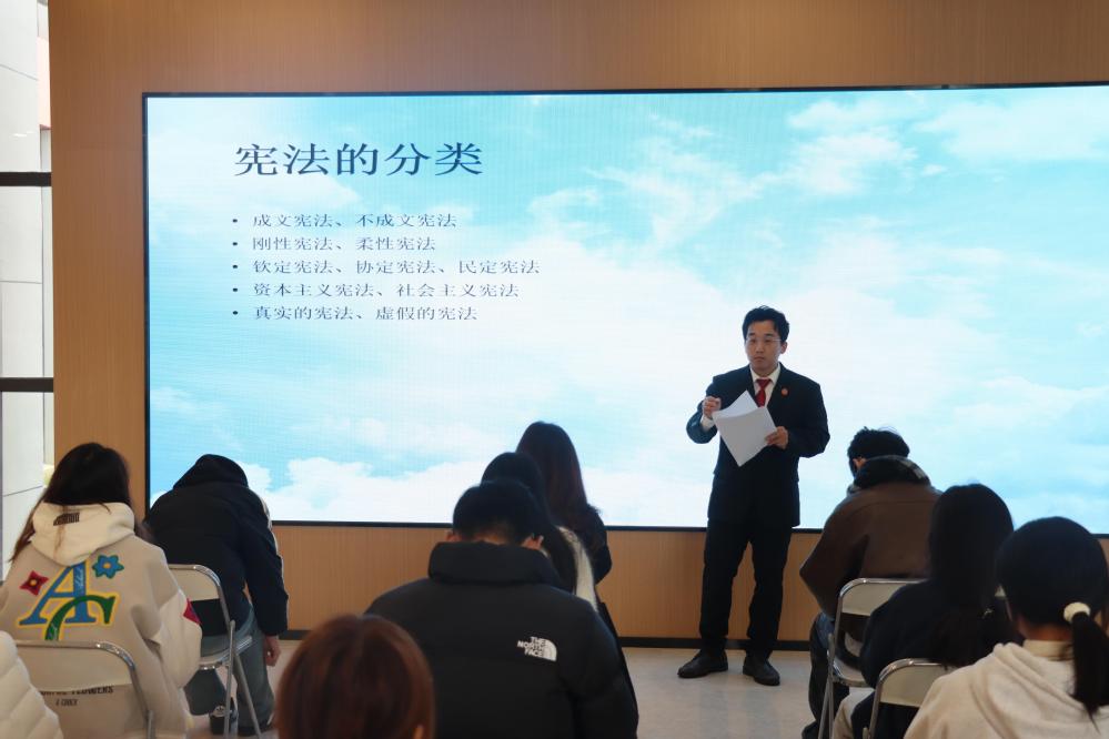为了迎接12月4日第十一个国家宪法日,加强师生宪法法治教育,米兰官方网页版信息工程系党支部在弘德楼西塔“一站式”学生社区服务中心举行了一场别开生面的法治讲座。讲座有幸邀请到高淳区人民法院综合办刑庭支部的专业法官前来授课。他们带着对下一代成长的深切关怀,走进校园,为我们带来了一场法律知识的盛宴。