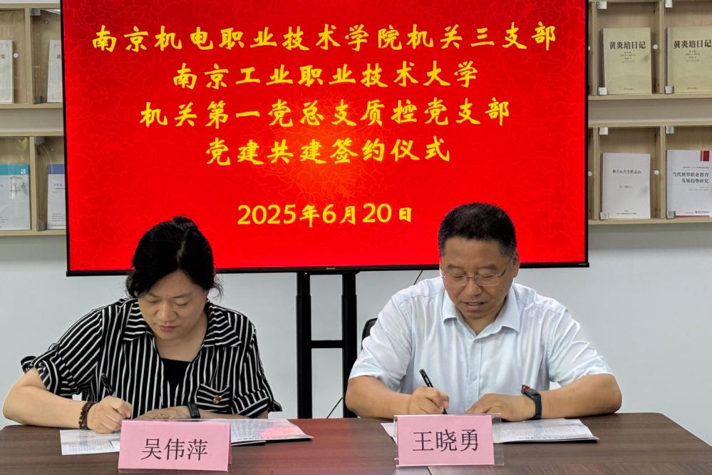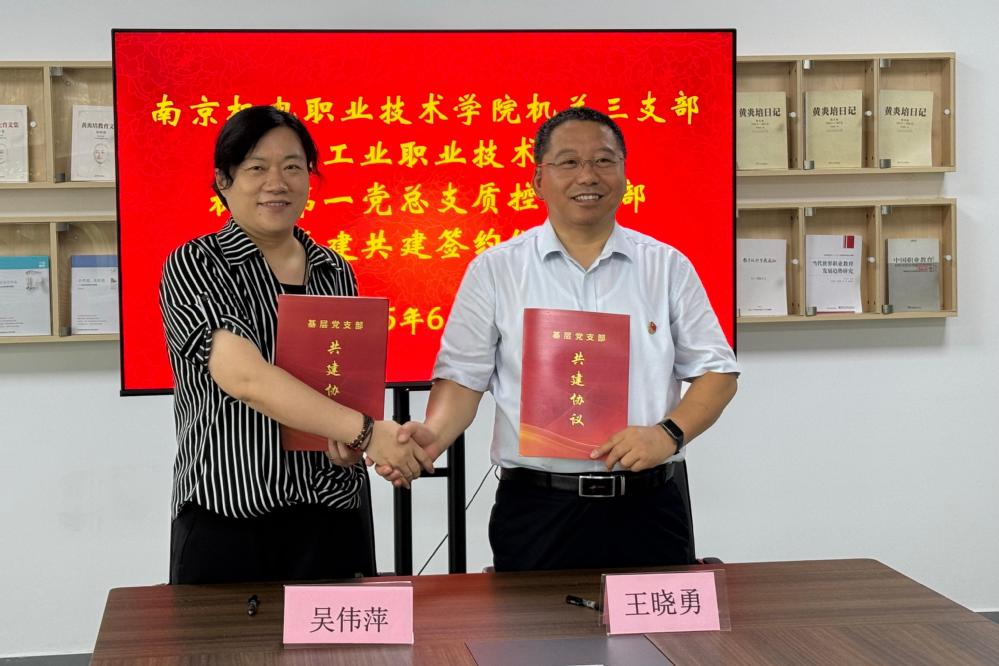 为充分发挥党支部的战斗堡垒作用和党员的先锋模范作用,进一步提高学校内部质量保证体系建设质量,促进学校高质量发展,2025年6月20日,南京工业职业技术大学质控党支部与我校机关三支部正式签订《基层党支部共建协议》,开启合作新征程。南京工业职业技术大学质控党支部书记王晓勇,米兰官方网页版机关三支部书记吴伟萍,双方支部党员代表及相关部门负责人出席签约仪式。