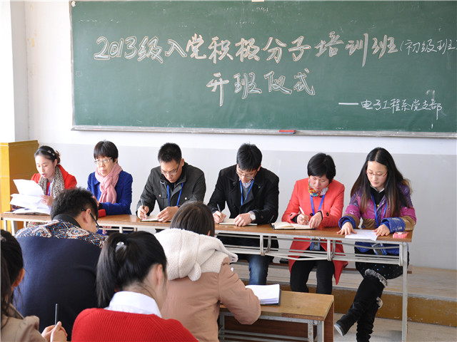11月18日中午12:30,米兰官方网页版电子工程系党支部在教学楼A208举行2013级入党积极分子初级班培训开班仪式。电子工程系党支部书记张宝中,宣传委员梁金平,组织委员林雪,党员惠珍、权海平、杨瑞以及31名积极分子学员参加了此次开班仪式。仪式由林雪老师主持。