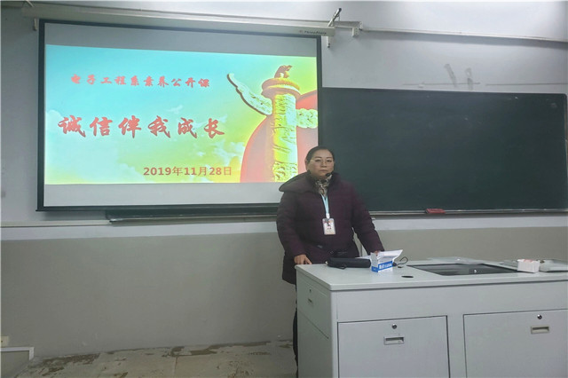 11月28日,电子工程系团总支在知行楼405展开了以诚信主题的素养公开课,主讲人是我系资深辅导员沈天濯老师,参加本次素养公开课的是19级应电专业的全体同学。