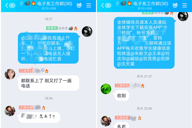 在吴书记的部署下,电子工程系从系部、班级到学生实行每日“日报告”和“零报告”制度,强化防控宣传工作,及时准确上报学生情况。疫情就是命令,防控就是责任。在这场防疫攻坚战中,每个辅导员都开足马力,冲锋在前,不漏一人,攻下一个又一个堡垒。寒冬总会过去,处处将迎来春的盎然,我们坚信一定能打赢这场没有硝烟的战役。