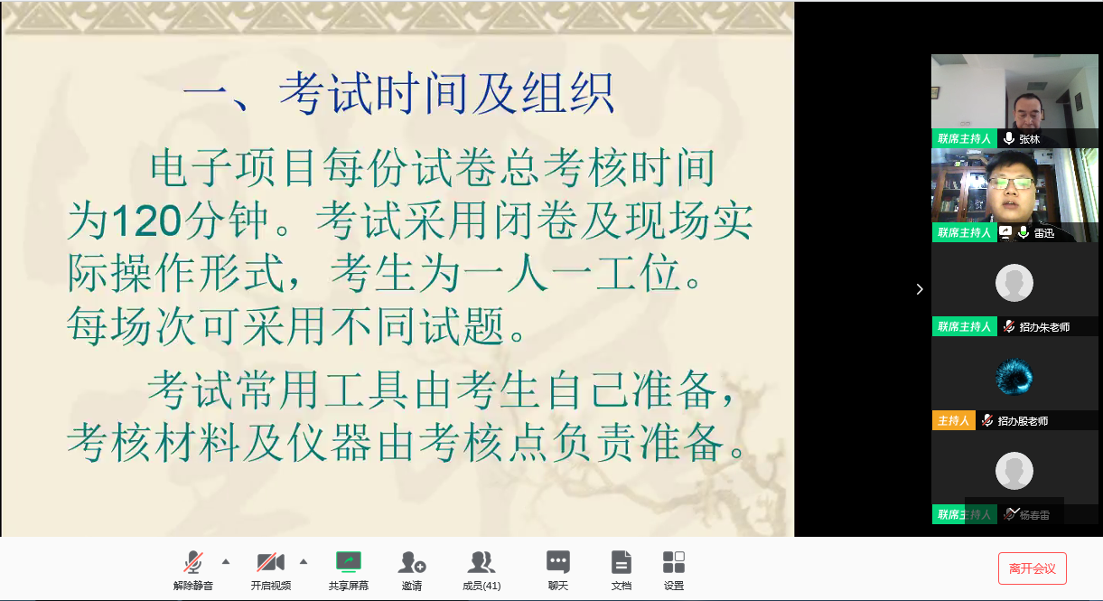 本次讲座,邀请了米兰官方网页版电子工程系张林老师和雷迅老师担任主讲。张林老师围绕“点长车电路的安装与调试”、“正反转电路的安装与调试”、“星三角降压起动电路的安装与调试”等典型任务,对电工技能训练等知识进行了详细分析和讲解。雷迅老师从“考试时间及组织”、“考核内容及权重”、“考试标准”等方面,针对口单招电子电工技能考试标准进行了解读。