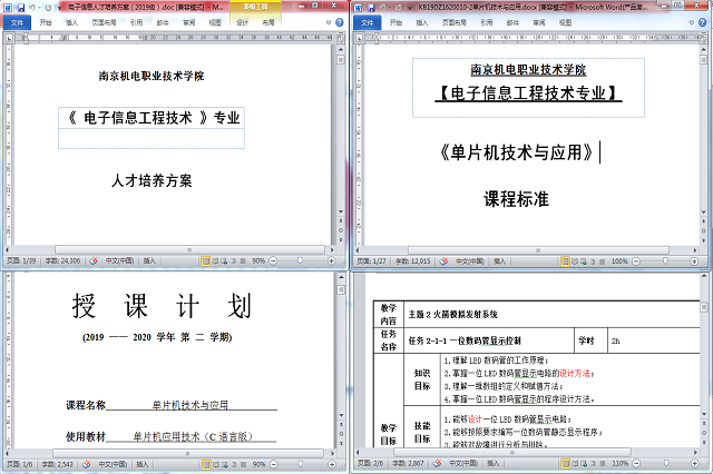 自2020年2月至今,电子信息教学团队一直围绕专业人才培养方案、课程标准、参赛教案、教学设计、教学实施视频的准备开展线上和线下研讨。首先,教学团队深刻认识到专业人才培养方案是职业院校落实党和国家关于技术技能人才培养总体要求,组织开展教学活动、安排教学任务的规范性文件,是实施专业人才培养和开展质量评价的基本依据。”因此,作为附件的专业人才培养方案必须做到:格式是否符合有关规范要求;内容是否落实有关专业教学标准;方案是否为学校实际使用的;文稿是否明确参赛课程、教学要求和学期安排。