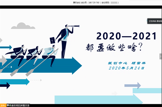 为切实做好新冠肺炎疫情防控期间的学生就业(实习)指导工作,进一步提升就业(实习)指导的精准性,增强学生就业本领和就业热情,电子工程系于5月24日下午2时,在腾讯会议APP上开展《2020-2021都要做些啥》就业(实习)指导讲座。电子工程系党支部书记吴伟萍、学工干事朱新文、全体辅导员及2018级学生共同参加了此次线上就业(实习)讲座。本次讲座由学院就业指导中心顾窗林老师主讲。