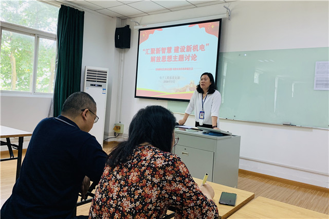 解放思想是我党思想路线的本质要求,是发展中国特色社会主义事业的一大法宝,也是我院在适应新形势、战胜新挑战、推动大发展、实现新跨越过程中的重要法宝。7月10日下午1点,电子工程系党支部全体教职工于博学楼307开展了主题为“汇聚新智慧 建设新机电”解放思想讨论活动,此次活动由电子工程系党支部书记吴伟萍主持。