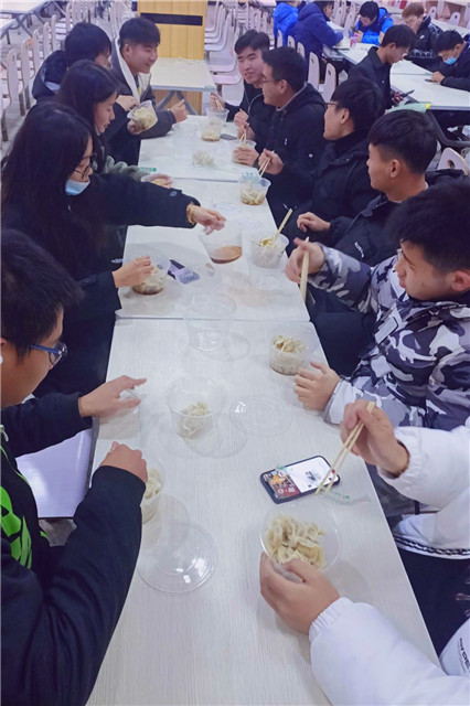谈到此次冬至活动,团支书鲁程涛同学说:“以前冬至我们都是在自己的小家里一家人包饺子,但是今年很不一样,我第一次在学校参加这样的集体活动,大家一起吃饺子,希望我们能记住这次活动,让这份美好的回忆永驻在我们的大学回忆里。”