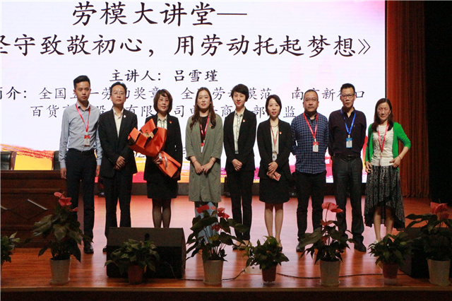 报告会上,吕雪瑾总监分享了习近平总书记在全国劳动模范和先进工作者表彰大会上的讲话精神,并通过“苦练内功,做追求极致服务的专家型销售状元”、“精准发力,做聚合正能凝聚人心的党支部书记”、“承启未来,做实体商业网络服务的弄潮儿”、“大爱无疆,做弘扬新时代主旋律的带头人”四个方面讲述了她在个人职业道路上的匠心服务与劳模心得。她提到:每个人都可以在平凡的岗位上做不平凡的事,而劳模更需要践行新时代无私奉献的精神,发挥引领辐射作用,希望同学们只争朝夕,成为“以劳动托起中国梦”的社会主义建设者和接班人,弹奏和谐共享的时代最强音!