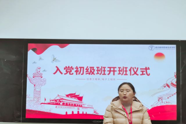 127日下午二点半,电子工程系党支部在思学楼307举行了2021年入党积极分子培训班开班仪式。此次开班仪式由电子工程系党支部组织委员李俊娇主持,党支部书记吴伟萍担任特邀嘉宾,392020级入党积极分子参加。