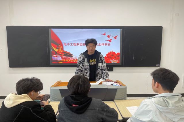 线下会议于思学楼108召开,首先由团总支副书记刘子涵作会前总结,并安排接下来的新学期各部门相关工作,其次秘书长王雨阳强调,各部门干事在新的学期中加紧学习,确保学习与工作两不误,为下一届的部长竞选做好准备。最后,副书记刘子涵指出,新学期加强对PU平台的使用以及智慧团建的管理,保证团总支工作平稳有序的开展。