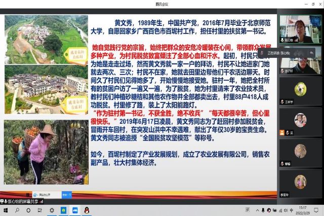 慕雪朝霜,毋改英雄意气,在这个春天,我们缅怀英雄,崇尚英雄,讲述英雄。为积极响应学院党建带团建的号召,我系于3月 22日下午开展“讲述英雄故事”线上云党课活动。此次活动由团总支书记林雪主持,党支部书记吴伟萍带领全系党员老师、团总支副书记刘子涵带领部分团员代表共同参加。