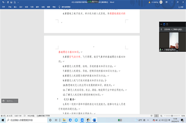 基础教研室全体教师于2022年4月19日研讨了无人机应用技术教学标准,由教研室主任司翠平老师主持。