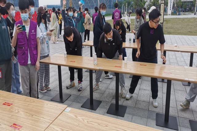 活动发起后,同学们纷纷响应,通过套圈、纸杯接水、抢板凳等小游戏释放自己的学习压力,营造健康的抗疫氛围。“战胜疫情,共克时艰”等套圈话语送出同学们对家乡、校园平安和师生健康的真挚祝福;纸杯接水的团结协作,坚定了大家战胜疫情的决心和信心;抢板凳小游戏,锻炼同学们的观察能力和反应能力,营造乐观向上的抗疫心理。