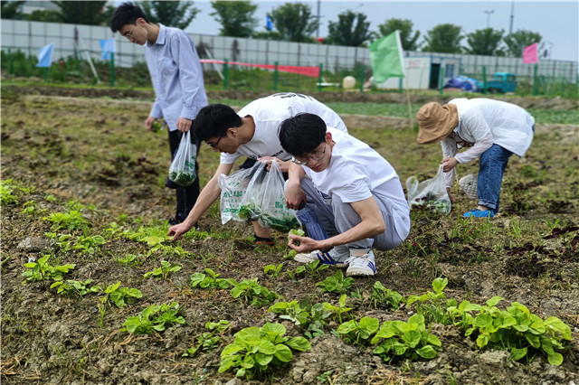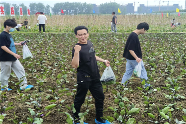活动一开始,吴伟萍书记亲自下田为现场师生们示范了采摘农作物的技巧,向同学们讲解了农作物各个生长时期的发育特性,并且带学生们认识了一些野生农作物。在场师生们都在认真学习,随后进入实践基地进行实践活动。走进实践基地,放眼望去,一串串、一个个青辣椒挂满枝头、翠绿欲滴。同学们一边小心走路避免踩到农作物,一边仔细挑选采摘成熟的辣椒并将它装袋,田间不时传来一阵阵欢快的笑声。活动结束后,电子工程系无人机211的徐政豪表示田园的劳作让他感受到精神与物质的双重收获,他不仅收获了天然的蔬菜,更体会到农民伯伯的艰辛,在以后的日子里,他一定会做到光盘行动,不浪费粮食、不浪费农民伯伯们的心血。