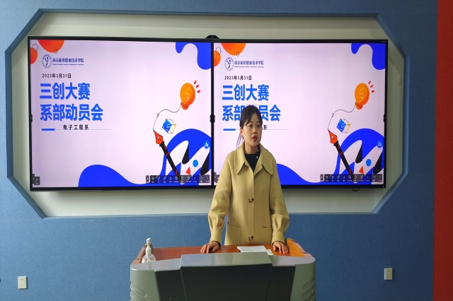 2023年3月31日中午12点半,电子工程系系部动员大会在思学楼410教室开展。会议由电子工程系主任姚小冬主持,全体教职工参加了此次会议。姚主任首先介绍了此次大赛参赛作品的分类要求,主要分为创新制作组、创意设计组、创业计划组,鼓励教师积极结合企业合作项目进行申报,强调教师对于学生的指导要细致全面。丁向琴副主任就专业班主任组织班级成员完成创新、创意类项目报名的流程提出了相应要求,规定由辅导员组织班级成员完成创业类项目报名,指导学生认真选题,确定项目团队及方案,撰写项目推荐表,全体师生应当齐心协力帮助参赛团队提升项目质量和竞赛能力。
