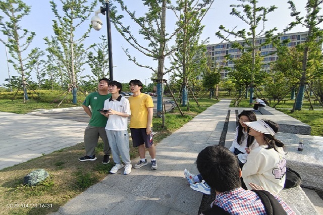 同学们利用已掌握的无人机的四面悬停技术俯拍校园全景,对于无人机的操控技术有了进一步的提升,也更加激发了大家对无人机应用技术领域的学习兴趣。