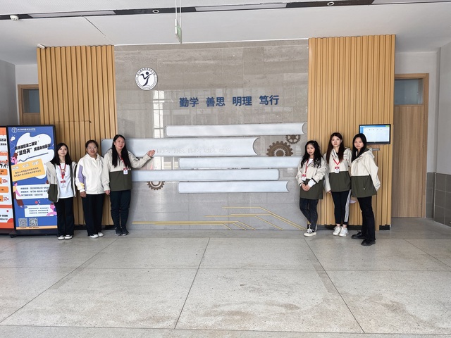 学院LOGO的下方,“勤学、善思、明理、笃行”蓝色大字,彰显学院办学特色,转动的齿轮装饰将主题衬托得更加鲜明。电子工程系的辅导员们坚持“学思用贯通、知信行统一”思想,他们在思学楼留下了自己美好的回忆,更期待每一位走进楼宇的机电学子都能从中汲取力量,学以致用,回报社会。
