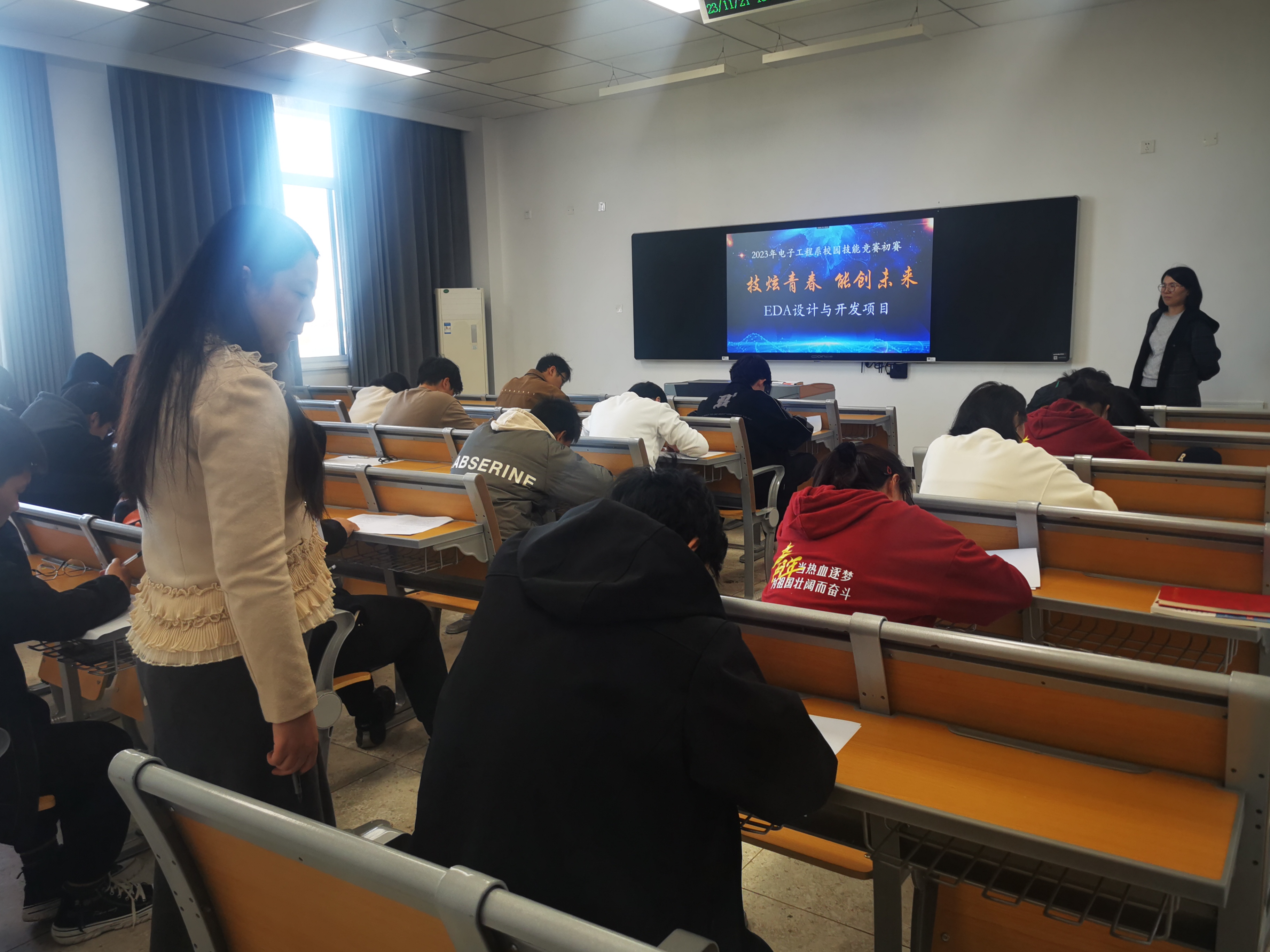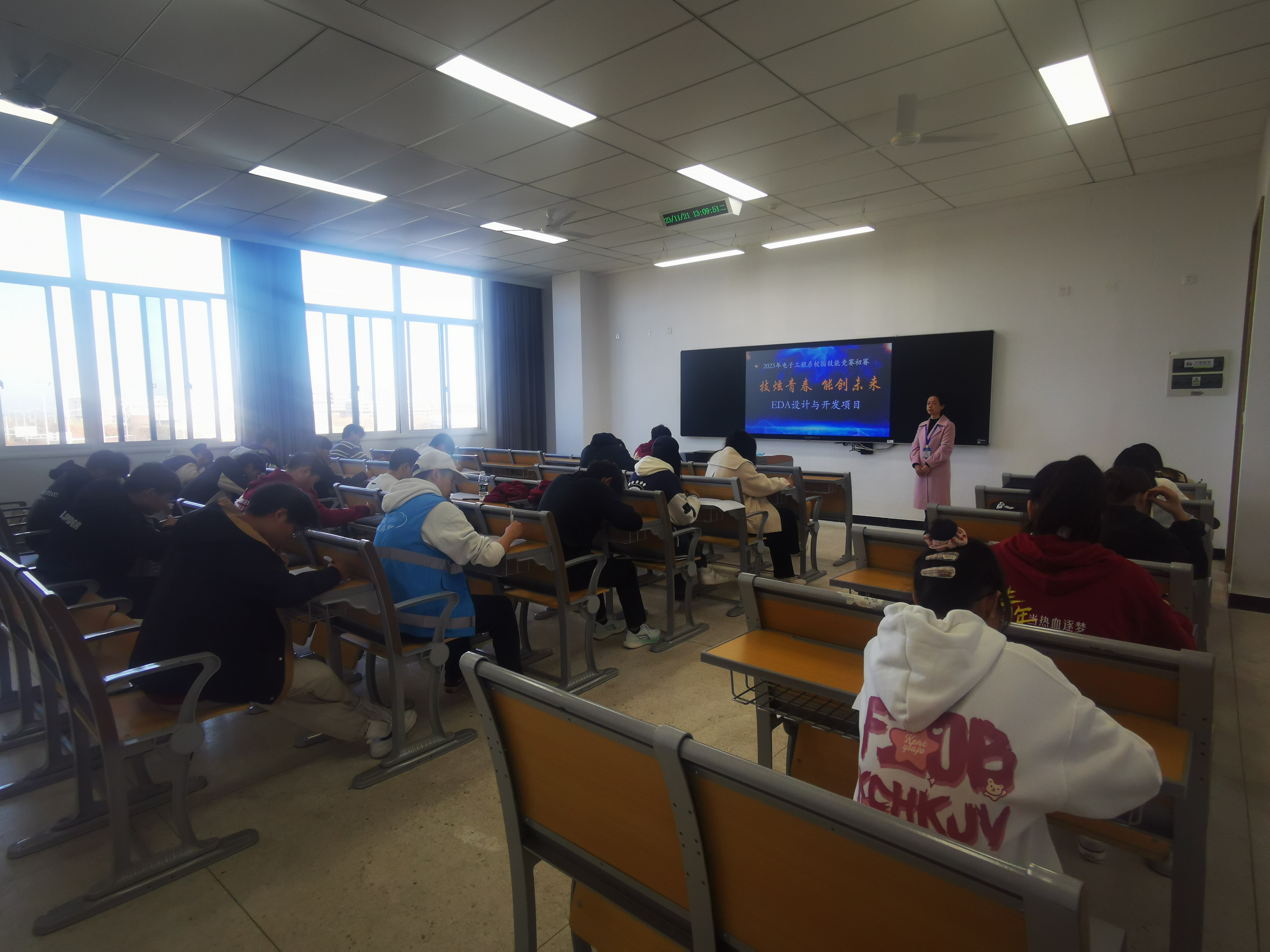 此次大赛设有3个项目:电子产品设计与制作、嵌入式设计与开发、EDA设计与开发,系部4个专业8个班共有300左右学生参与各项目的角逐。大赛分初赛和决赛两个阶段进行,初赛于11月21日以理论考试选拔为主,决赛于11月28日采用实操形式进行。
