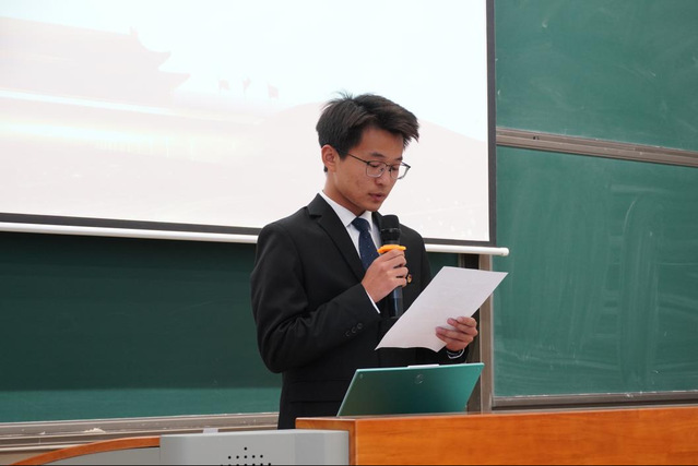 系团委代表张文宝宣读学生代表大会贺词,他表示,电子工程系学生会和团委长期以来互相支持,希望以本次学代会的召开为新的起点,面向未来,继续奋进。