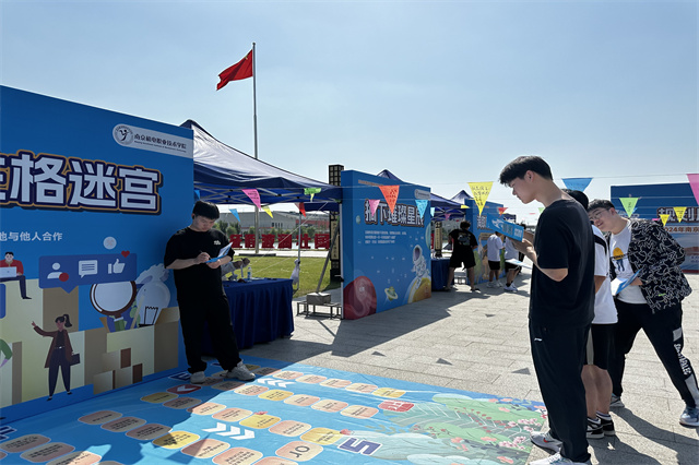 活动采用自助式体验形式,同学们可根据个人兴趣和需求,自由选择参与不同环节。现场设置了多个体验区,如“生涯彩旗区”让同学们在升起彩旗的同时明确自己的职业愿景;“兴趣学堂”引导同学们深入了解不同职业的特点和要求;“性格迷宫”则通过MBTI等性格分析工具帮助同学们认识自我,找到更适合自己的职业方向;“璀璨星辰”和“职业宝藏”等环节则让同学们在轻松愉快的氛围中淘取职业知识和灵感。