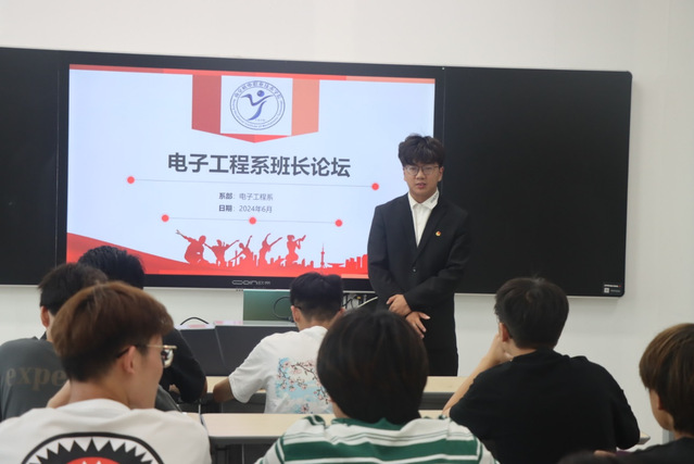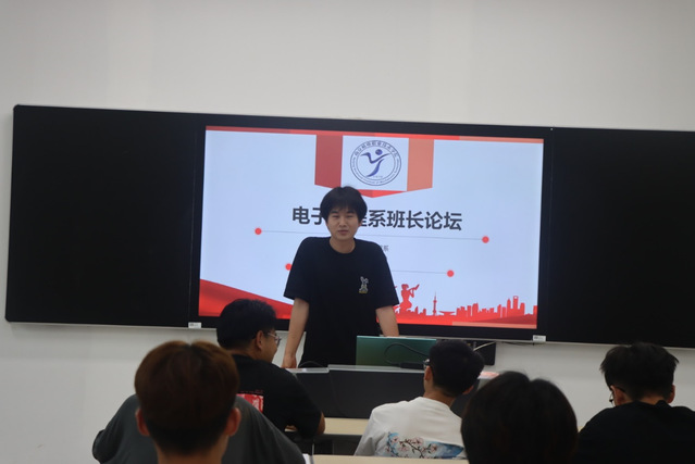 6月18日下午6点,电子工程系在思学楼104召开第一期班长论坛会,由赵梦楠、洪剑、杜来松作为主讲人,分三项内容向在校班长分享成长经验。