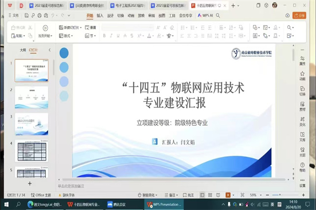 2024年8月20日,电子工程系通过线上会议的形式,成功召开了“十四五”院级专业建设项目验收系部汇报分享会。系党支部副书记陈雪、教学主任丁向琴以及四个专业团队的全体教师参加了此次会议,同时特别邀请了质控办主任吴伟萍作为嘉宾,为汇报内容提供专业建议。
