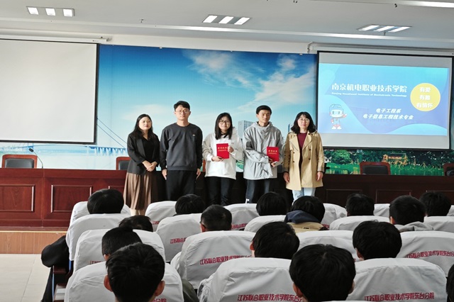 10月23日,郭晓凤为22级和23级计算机应用专业学生播放了我校“南京机电八一08:星梦启航、机电有我”宣传片,展示了学校探索“太空”的成就,激发学生坚定考入我校的决心和信心。丁向琴为22级学生颁发了表彰证书,表彰他们在学业上的优异表现与不懈努力,同时给24级班级授予班牌。面向22级、23级学生,她再次强调了转段要求,详尽阐述了转段考核内容、方式、分数分布等,进一步明确了转段考试的具体安排与重要性。