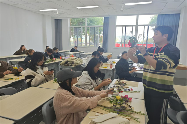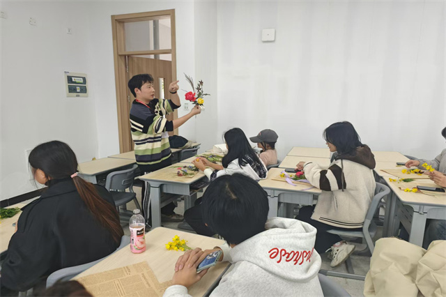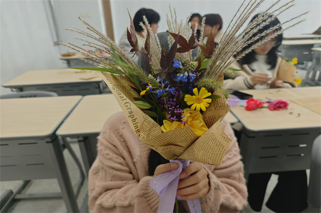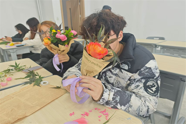 同学们纷纷表示,此次活动不仅让自己放松了身心,也学会了如何更好地调节情绪、提升自我。电子工程系2024级学生王同学说:“包装好一束花,似乎也在心中装下了一片阳光。这样的活动让我感受到学校对我们的关怀,太温暖了。”最后,大家举着成品互相展示、打趣夸赞,欢声笑语回荡在场地,每个人都成就感满满,靠自己解锁了包花、扎蝴蝶结的新技能。