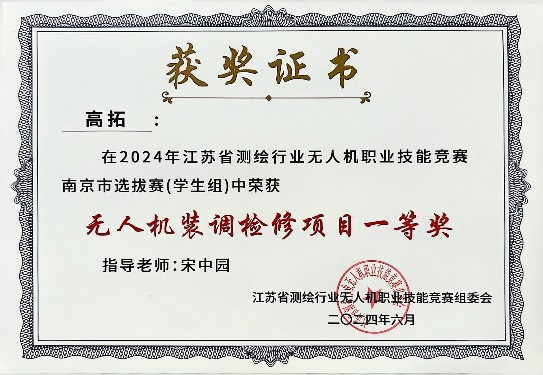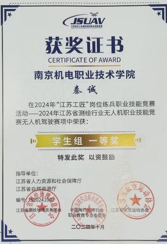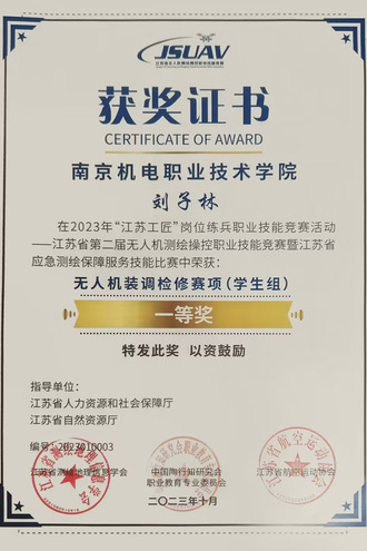 徐政豪,2023届杰出毕业生,在校期间便以卓越的表现脱颖而出。他勤奋好学,积极参与无人机项目,屡获佳绩。更难能可贵的是,他勇于探索未知,敢于创新,展现出非凡的创业潜力。毕业后,他凭借在校积累的知识与经验,创立了南京淳飞无人机科技有限公司,实现了从学子到企业家的华丽转身。徐政豪的在校表现,不仅为学弟学妹树立了榜样,更为母校增添了无限荣耀。