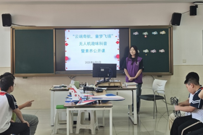 活动伊始,志愿者们以精心制作的科普视频作为开场,直观展现无人机在航拍测绘、农业植保、应急救援等领域的广泛应用,瞬间吸引了小学生们的目光。随后,志愿者们化身“小老师”,用通俗易懂的语言,结合图文并茂的PPT,从无人机的基本构造、飞行原理,到操作技巧与安全规范,进行了深入浅出的讲解。